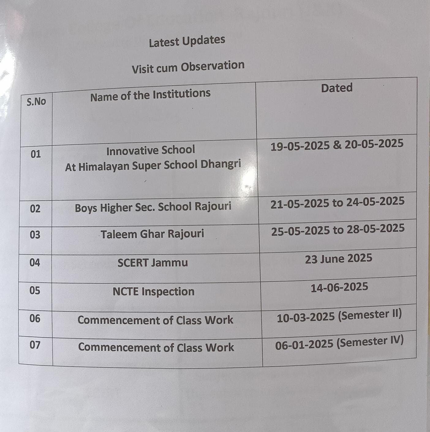 • Established in 2003, Himalayan College of Education, Chenani Bagla, Rajouri (J and K)—under the visionary leadership of the Himalayan Education Mission Society Rajouri (Regd)— at a distance of 155km from university of jammu has emerged as one of the leading institutions of teacher education in the Union Territory of Jammu and Kashmir. The college is recognized by the Government of Jammu & Kashmir and affiliated to the University of Jammu, offering the Bachelor of Education (B.Ed.) programme with a commitment to academic excellence, innovation and social responsibility. Strategically located at Chenani Bagla, Rajouri, along the Jammu–Poonch National Highway, the college boasts a modern, well-planned campus that blends academic rigor with holistic development.Himalayan College of Education offers a comprehensive and learner-centric academic environment, supported by Well-ventilated and ICT-enabled lecture theatres to foster interactive and engaging classroom experiences. A modern indoor sports hall and well-maintained outdoor sports facilities to encourage physical fitness and team spirit.
